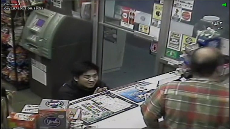 Surveillance video, which was presented as evidence in Dzhokhar Tsarnaev’s trial, shows a man rushing into a gas station after a carjacking.March 12, 2015