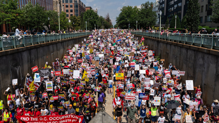Thousands of protesters marched across Washington, D.C. in one of the largest demonstrations against President Donald Trump’s federal takeover of policing in the nation’s capital.Sept. 6, 2025