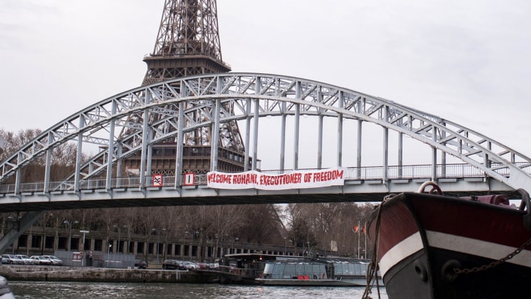 Feminist activists staged a mock execution beneath a Paris footbridge to draw attention to what they said is Iran's policy of keeping free-thinkers on death row.Jan. 28, 2016