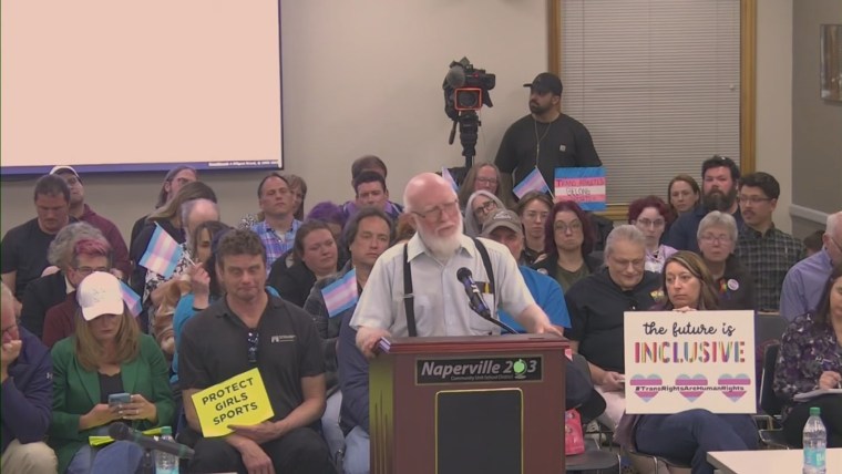 01:17 Dozens of Naperville, Illinois parents took part in a heated school board meeting after a transgender athlete won multiple events at a middle school girls track meet. WMAQ's JC Navarette reports. May 21, 2025