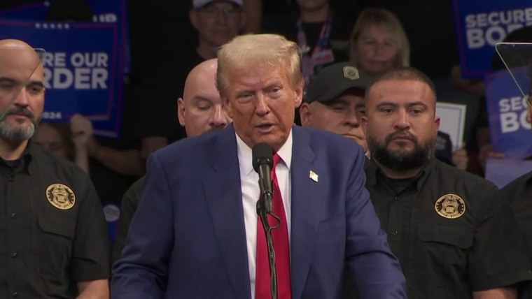 Former President Donald Trump said he would ask Congress to pass legislation to hire an additional 10,000 agents at the border. The announcement came after the National Border Patrol Council, the labor union for Border Patrol agents and staff members, joined him onstage to voice their support for him.Oct. 14, 2024