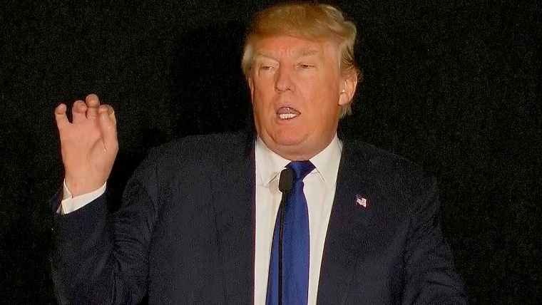 Republican presidential candidate Donald Trump speaks to an audience in Portsmouth, New Hampshire, ahead of winning the endorsement of the New England Police Benevolent Association.Dec. 11, 2015
