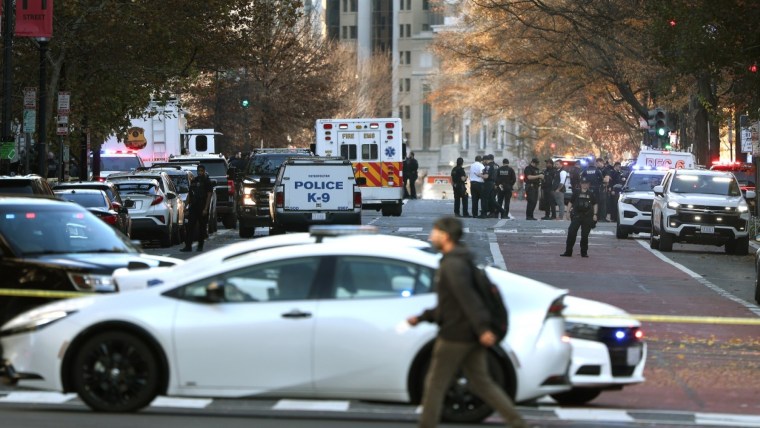 Two National Guardsmen were shot near the White House in Washington, D.C., the Secretary of Homeland Security Kristi Noem has confirmed. Police say a suspect is in custody and the area is secured after a multi-agency response to the incident. Nov. 26, 2025
