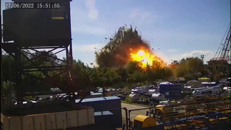 Ukrainian President Volodymyr Zelenskyy released a video claiming to show the moment a Russian missile struck the shopping mall in Kremenchuk. NBC News cannot independently verify the president's allegations.June 29, 2022