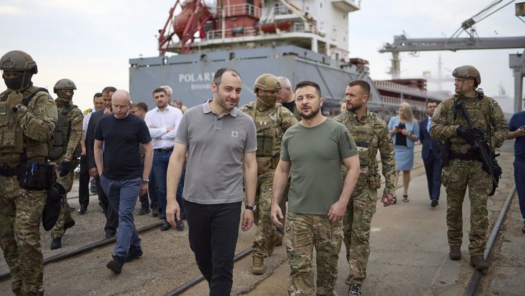 President Volodymyr Zelenskyy visited one of Ukraine’s main Black Sea ports Friday, a week after a deal was struck with Russia, Turkey and the United Nations to create safe corridors for ships to export grains that have been trapped in the country since the war began five months ago.July 29, 2022