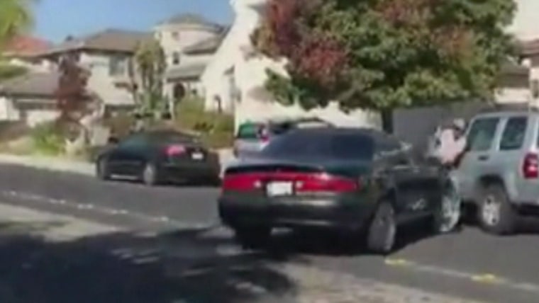 An argument on a suburban street in Antioch, California, escalated into a violent altercation when a driver rammed his car into another man, pinning him against his own vehicle. Police are now looking for the driver.Nov. 13, 2019