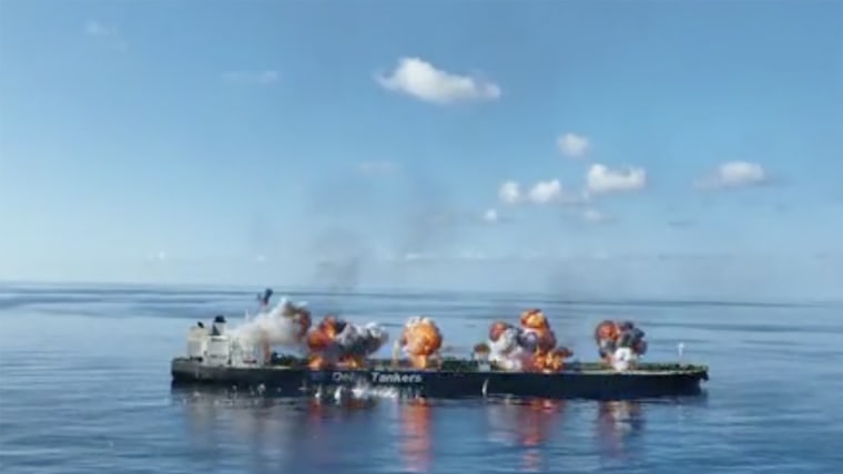 Video released by Yemen's Houthi rebels planting explosives on a Greek-flagged tanker and detonating blasts that put the Red Sea at risk of a major oil spill.Aug. 30, 2024