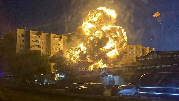 The moment a Russian bomber crashed into an apartment complex in Yeysk, Russia, late Monday was captured on surveillance video. At least 13 people were killed and 19 more injured.Oct. 18, 2022
