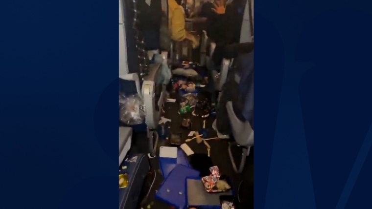 The nature of the emergency wasn’t entirely clear, but video verified by NBC News shows the passenger cabin of the Boeing 787-8 in disarray after the incident, meal trays and food strewn about the floor and some of the aircraft’s headliner separated from the cabin’s ceiling.