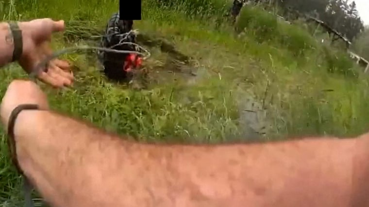 Bodycam video shows the moment a Washington state sheriff's deputy used a lasso to capture a man armed with a chainsaw after he had jumped into a shallow pond.June 17, 2025