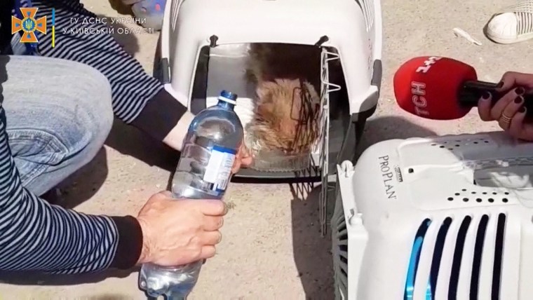 Ukraine's emergency services released video of workers rescuing a cat from a bombed-out high-rise building in Borodianka, a town devastated by Russian strikes.May 2, 2022