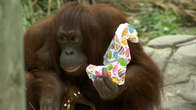 Zookeepers in Tampa's Lowry Park Zoo played Easter bunny and hit baskets in the orangutan exhibit.March 26, 2016