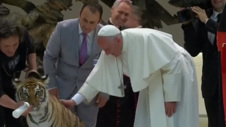 Watch Pope Francis Pet a Tiger Cub