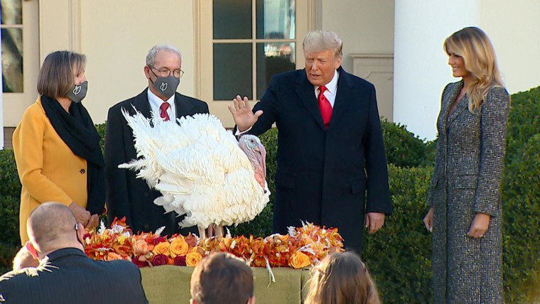 President Trump and first lady Melania Trump participated in the annual White House event, which dates back to Abraham Lincoln. This year's lucky turkeys, named "Corn" and "Cob,” hail from Iowa.Nov. 24, 2020