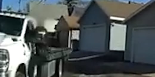 Officer hangs off truck before fatally shooting driver