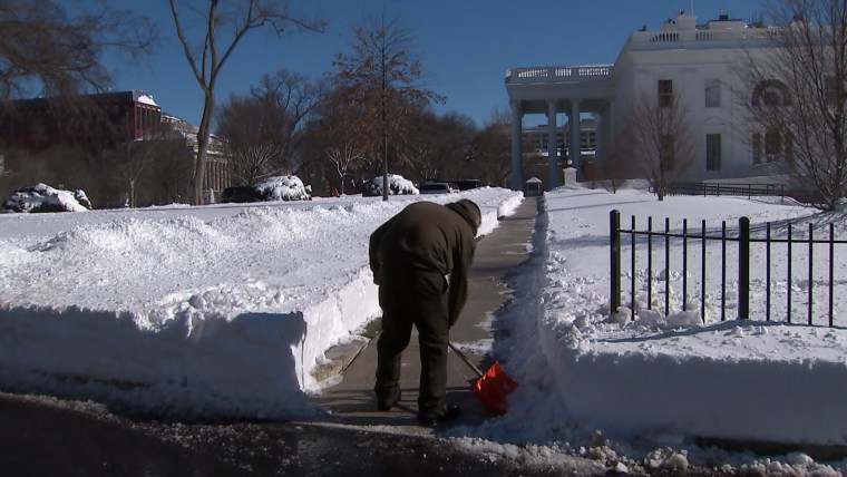 Workers at the White House cleans up after the massive storm that hit the Northeast.Jan. 24, 2016