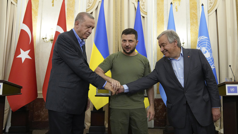 Zelenskyy meets with U.N. chief and Turkish president in Lviv, Ukraine