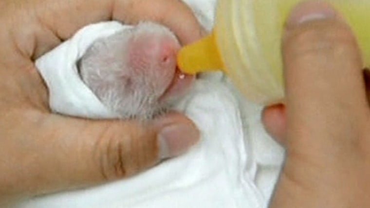 Hear tiny squeaks from a fragile, two-day-old panda cub as it is bottle-fed by zookeepers at the Taipei Zoo in Taiwan.July 8, 2013