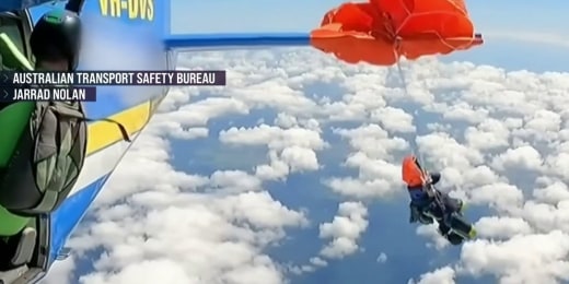 Skydiver dangles from plane after parachute gets tangled