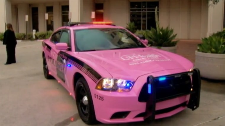 Orlando police officer Karen Long, who is still on the job while fighting breast cancer for a second time, is honored with a pink patrol car. Rikki Klaus, of WESH, reports.Oct. 6, 2014