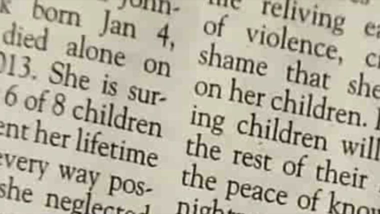 A Nevada obituary claims a mother of eight tortured her children and they celebrated her passing. KRNV’s Terri Hendry reports.Sept. 12, 2013