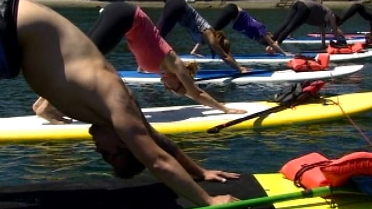 A new fitness activity that's gaining popularity combines paddle boarding and yoga. KING-TV's Christie Johnson reports.June 13, 2012