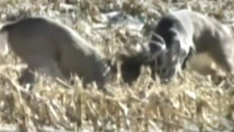 Bucks tangle antlers in Neb. cornfield