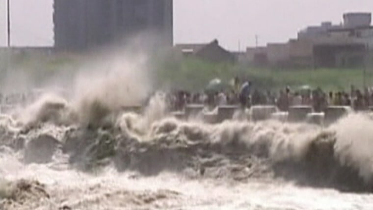 More than 40,000 people turn out to watch return tides hit the shores of the Qiantang River. Msnbc.com's Al Stirrett reports.Aug. 31, 2011