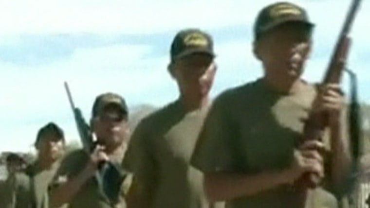 00:36 Mexican army personnel attempted to disarm a community police force that was marching to the local mayor's office. In recent months, locals have taken the law into their own hands by setting up community police forces to combat crime. NBCNews.com's Alex Witt reports. March 15, 2013
