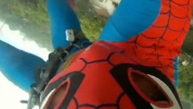 00:52 Spiderman was one of seven contestants that were able to swing on a rope between cranes that CCTV says is equivalent to swinging off a 33-story building. Msnbc.com's Dara Brown reports. April 30, 2012
