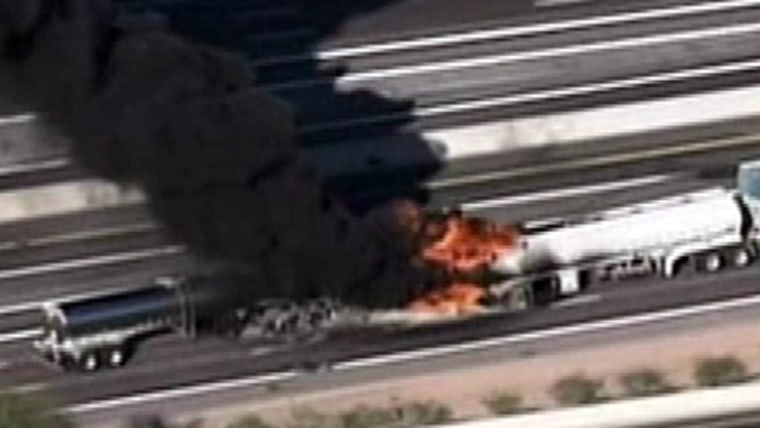 Two tankers collide and erupt into flames near Phoenix, creating a massive cloud of smoke that forced evacuations for nearby homes. Msnbc.com's Dara Brown reports.Nov. 9, 2011