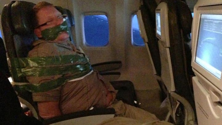 Tape, restraints hold down 'unruly' passenger