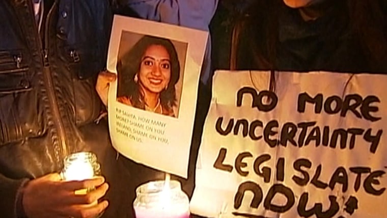 Hundreds of women in Ireland are protesting, calling for legislative change after the death of Savita Halappanavar, who died after her requests for an abortion were rejected by her Irish doctors. NBC’s Jim Maceda reports.Nov. 15, 2012