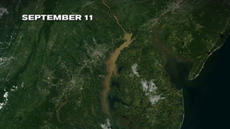 The Weather’s Channel Mike Seidel sent a photo showing mud roaring down the Susquehanna River into the Chesapeake Bay. NBC’s Brian Williams reports.Sept. 14, 2011