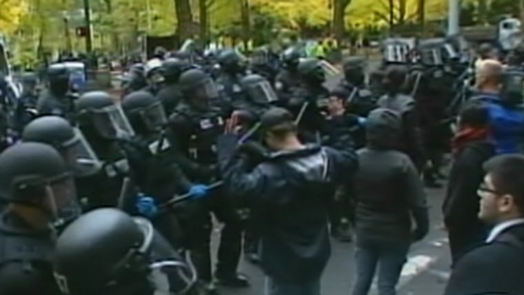 Riot police in Oakland evicted “Occupy” protesters and tore down their camp Monday. In Portland, Ore., 1,000 protesters confronted police Sunday. NBC’s Brian Williams has more.Nov. 15, 2011