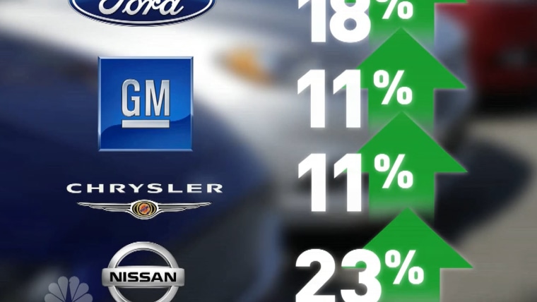 Ford, GM, Chrysler and Nissan are all reporting sales up double-digits, their strongest April sales since 2007. NBC’s Brian Williams reports.May 1, 2013
