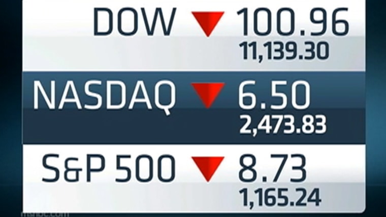 The Dow Jones industrial average was down more than 300 points early on Tuesday, then clawed its way back to close down about 100 points. The Nasdaq and the S&P indices were also down following a dismal day on the European markets. NBC’s Brian Williams reports.Sept. 7, 2011