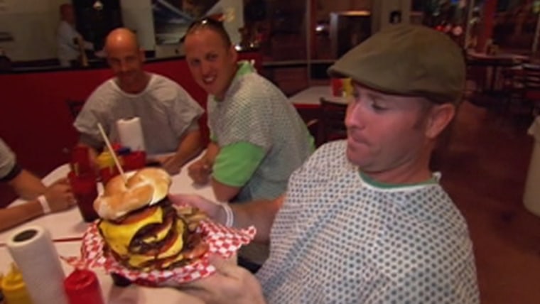 At the recently opened Heart Attack Grill in Las Vegas, customers who tip the scales at more than 350 pounds eat free. The eatery specializes in food that's bad for you, including a so-called “quadruple bypass burger.” NBC’s George Lewis reports.Oct. 20, 2011