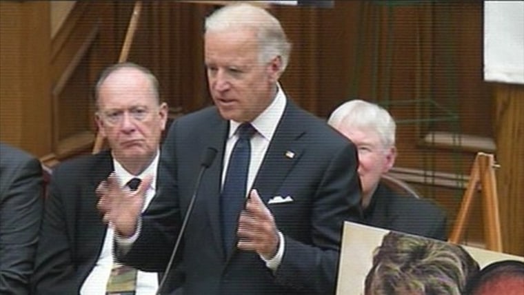 Vice President Joe Biden speaks at a memorial for former Democratic U.S. senator and three-time presidential candidate George McGovern.Oct. 25, 2012