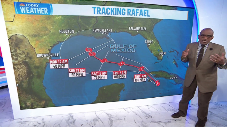 In a 2 a.m. ET Thursday update, the center said Rafael was about 115 miles west-northwest of Havana as it moves away from western Cuba and heads to the southeastern Gulf of Mexico.
