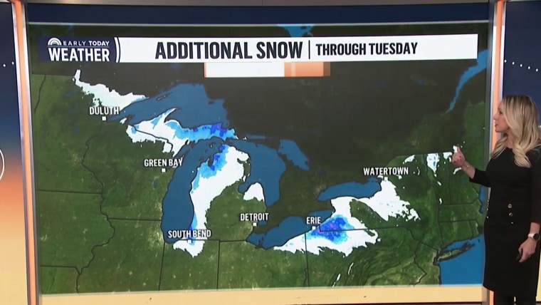 The highest snow accumulations are expected east of Lake Ontario, where some isolated areas could get up to 60 inches of lake effect snow by early in the week around the Watertown, New York, area, the NWS said. The Tug Hill Plateau will be hit especially hard, with an additional 1 to 3 feet of snow expected through Tuesday morning.