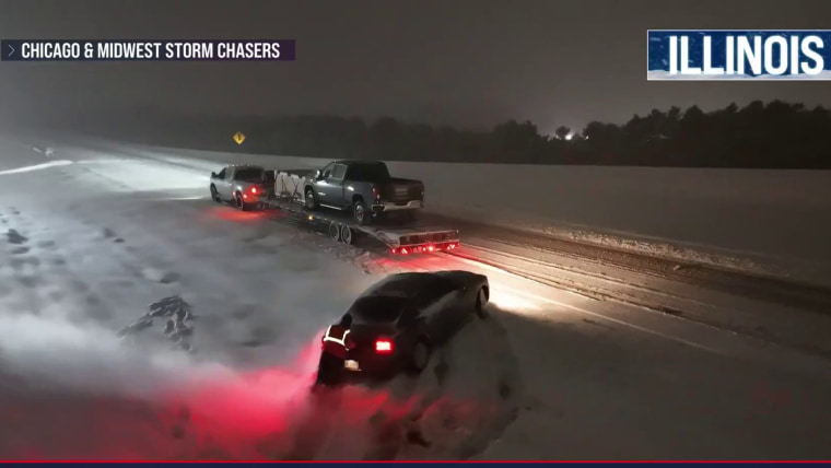 Snowfall totals Sunday morning include 9.4 inches in Canton, South Dakota; 8 inches in Ames, Iowa; 5.7 inches in Rockford, Illinois; and 4 inches in the area around Chicago O’Hare International Airport.