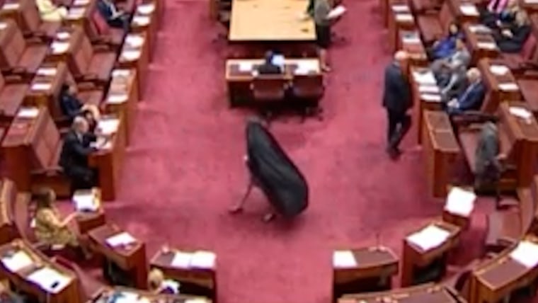 MELBOURNE, Australia — An Australian senator who is campaigning for a national burqa ban was barred Tuesday from Parliament for the rest of the year for wearing the Muslim garment in the chamber.