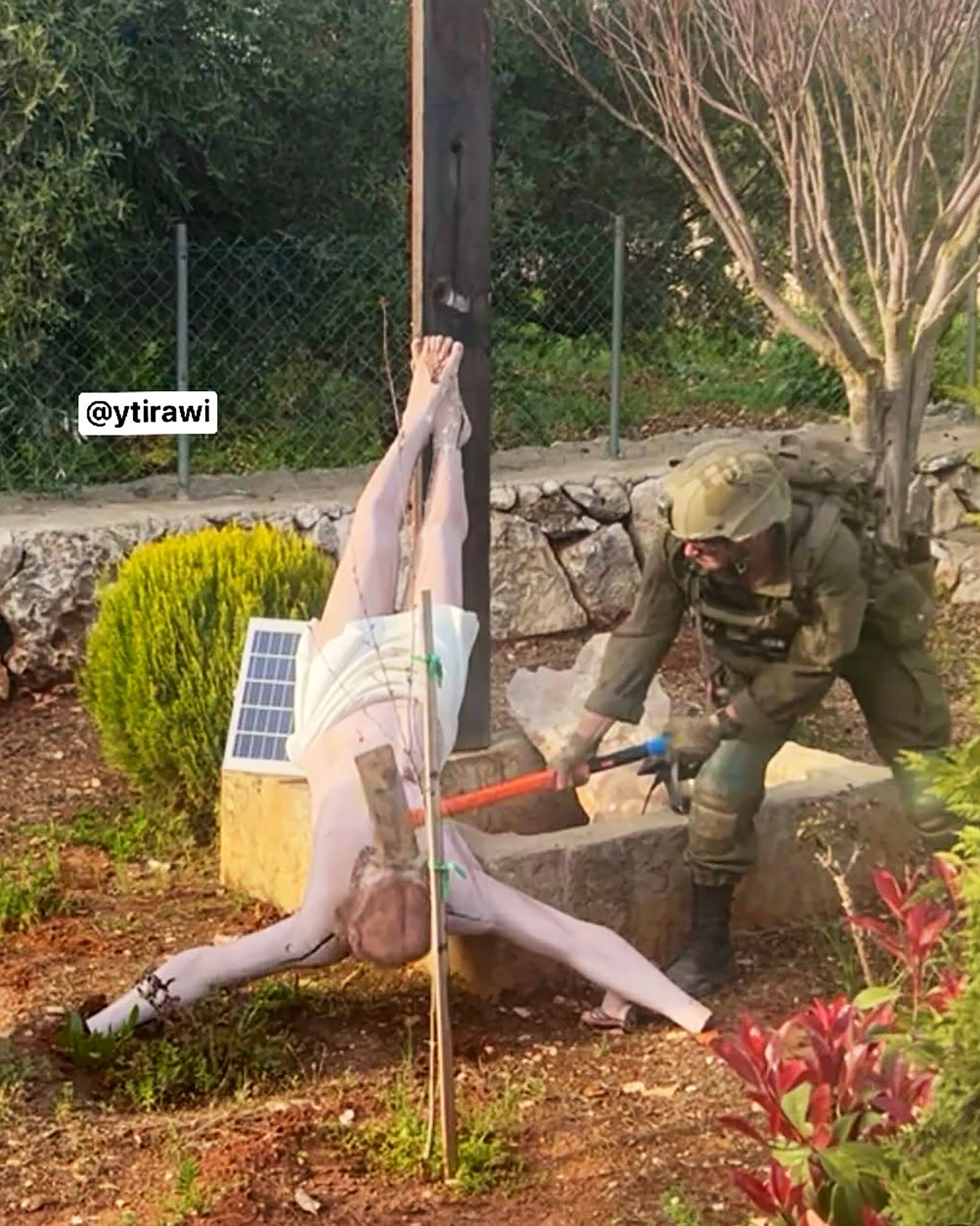 Israel condemns photo of soldier striking Jesus statue in Lebanon