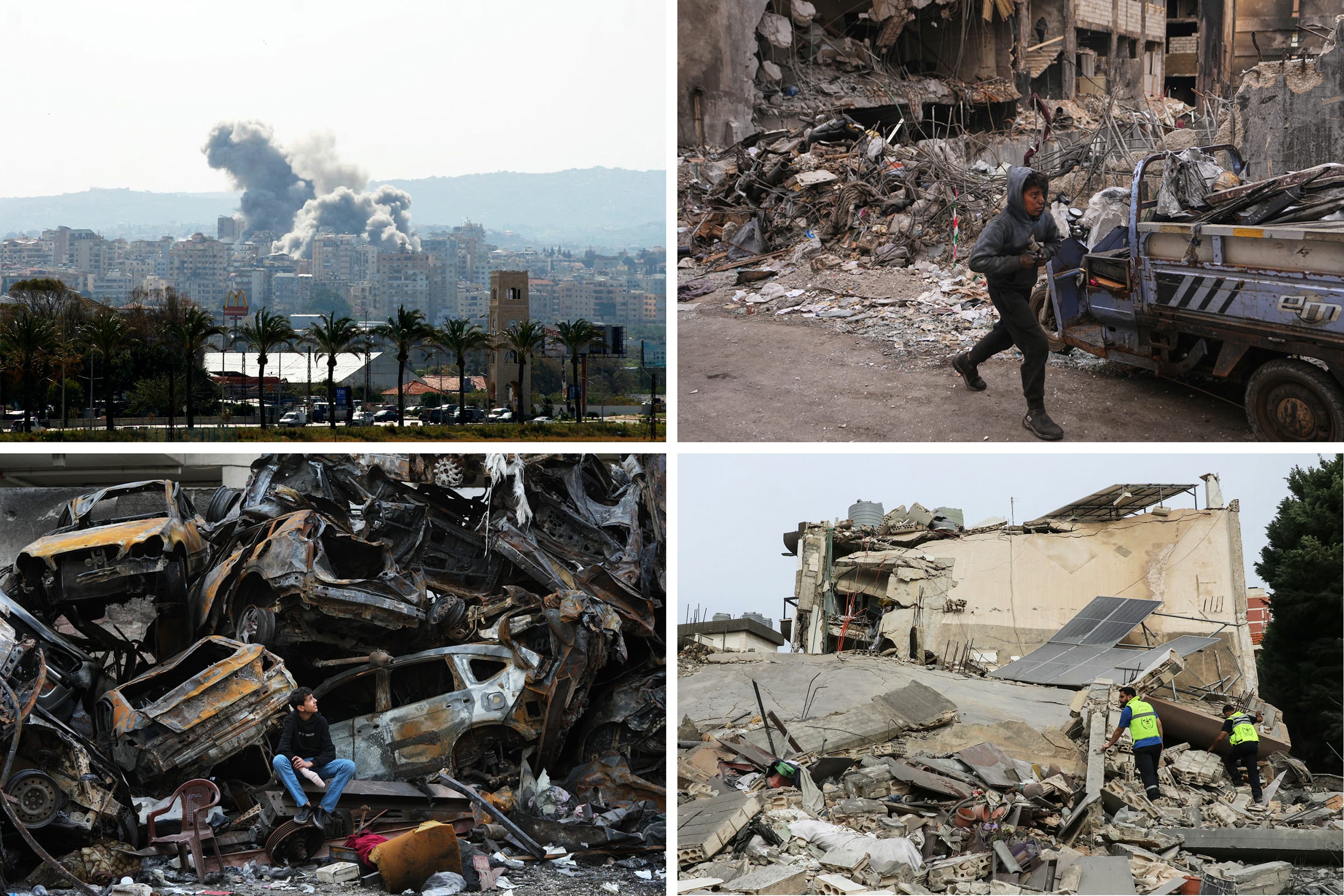 Scenes of destruction across Lebanon yesterday. AP; Getty Images