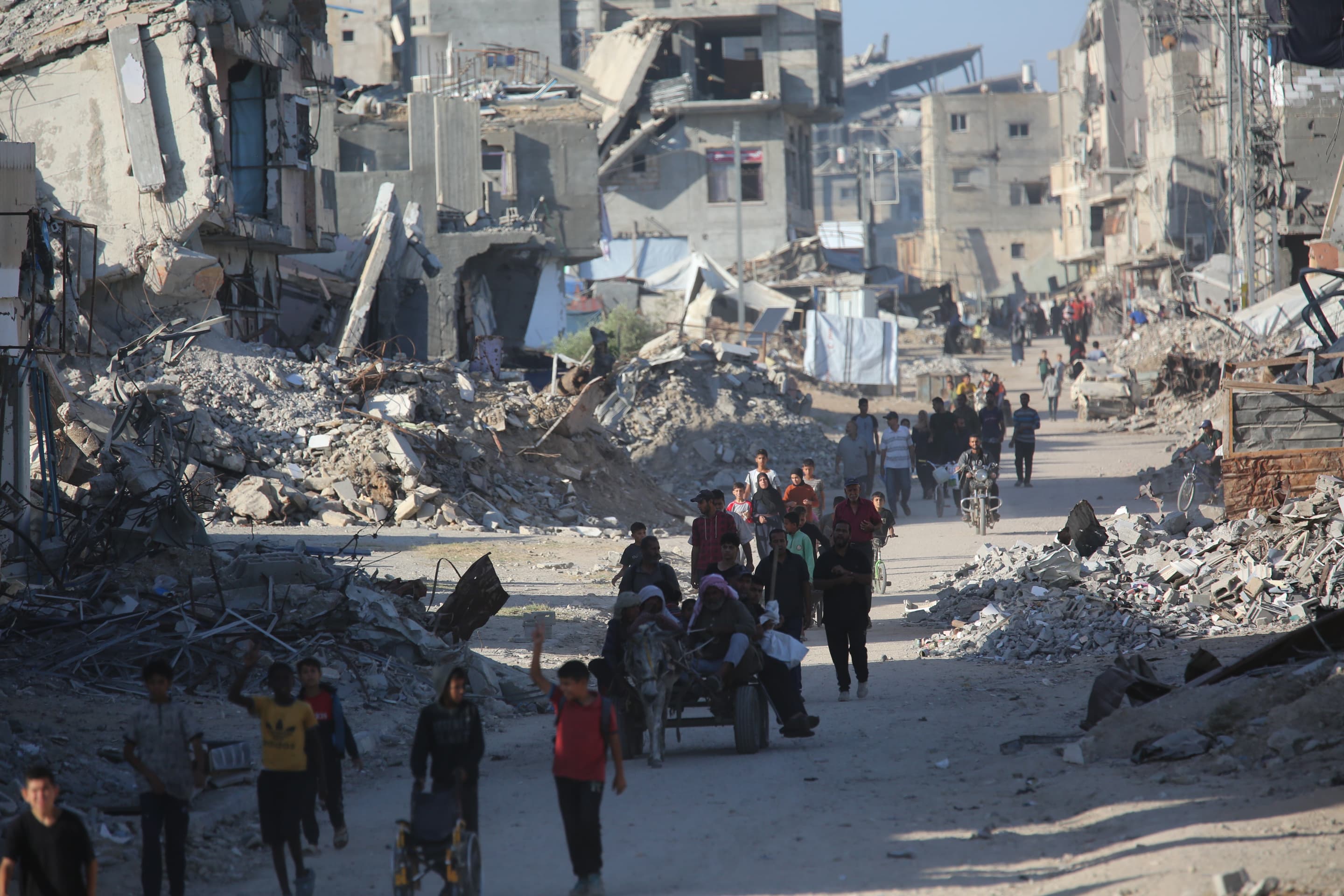 Displaced civilians returned to a landscape of rubble and ruins in Khan Younis as the Gaza ceasefire came into effect. "No signs of life are left," said one man. "Everything has been wiped out."