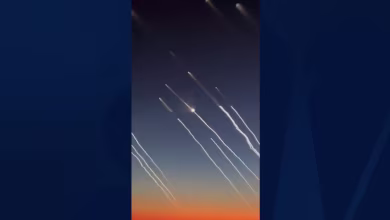 Another passenger posted a similar video, in which more than a dozen shimmering missiles can be seen across the horizon. “They are ascending,” the person says in the video in Arabic.