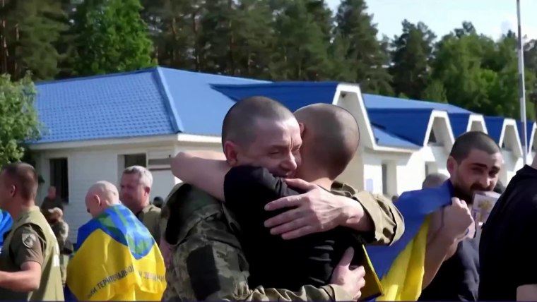 “I’m happy for those who came back. I’m also very saddened that my husband is still out there somewhere,” she told NBC News through tears Tuesday while, like most people here, holding a large photograph of her husband, whom she last heard from in November, when he called to say his 36th Marine Brigade was headed to the embattled northern city of Sumy.